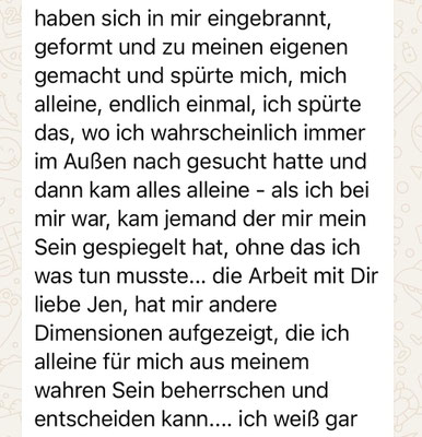 Intensive Begleitung durch mich für 3,4,5 oder 6 Monate. Die Anzahl der Einzelsitzungen (60 Minuten per Zoom inkl. Aufzeichnung) ist frei wählbar, die restliche Zeit begleite ich dich per Whatsapp oder Telegram-Nachrichten. Montag bis Freitag 9 bis 18 Uhr - ich antworte immer so schnell wie möglich).